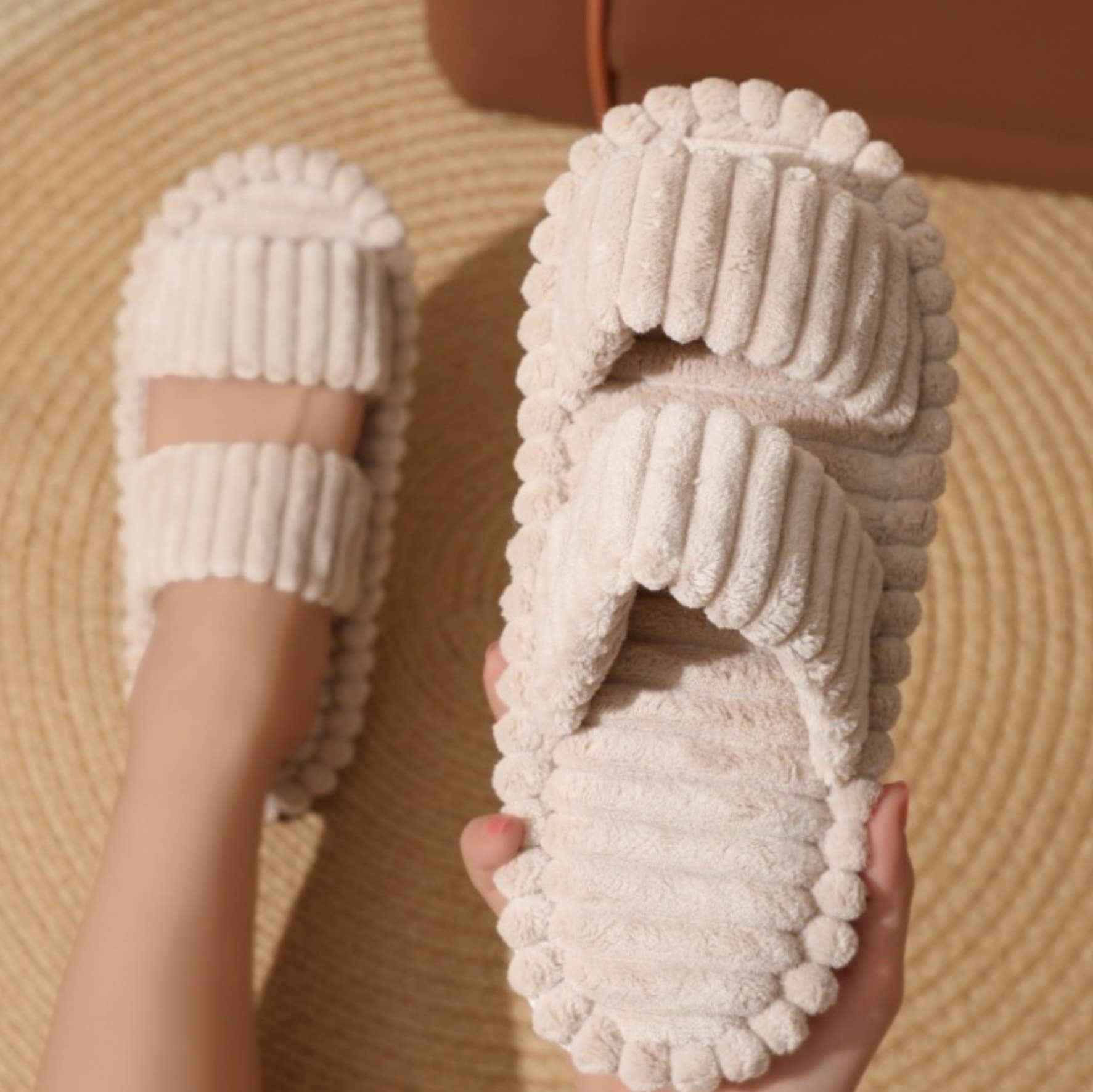 Plush Double Strap Slippers